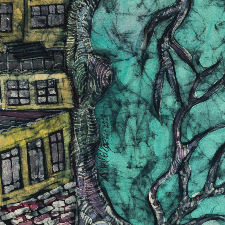 Waxed Batik on Silk Fabric, (50x50cm). All rights reserved.