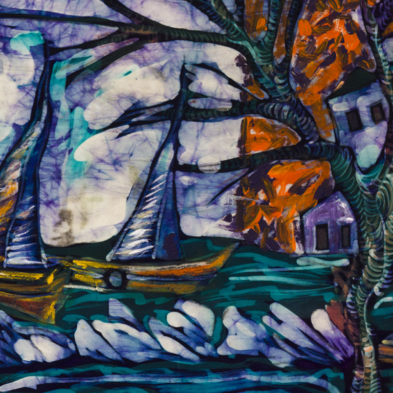 Waxed Batik on Silk Fabric, (55x55cm). All rights reserved.