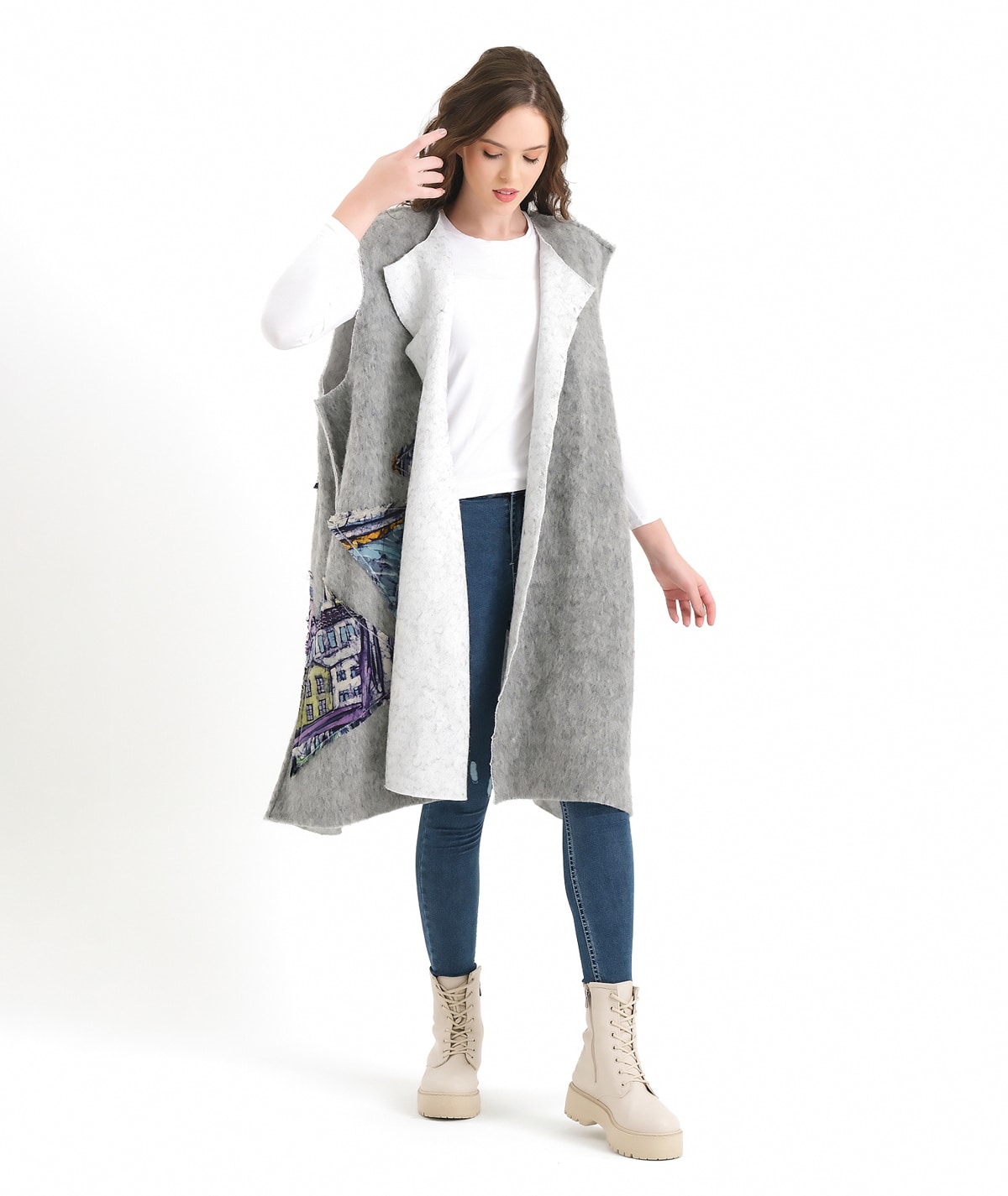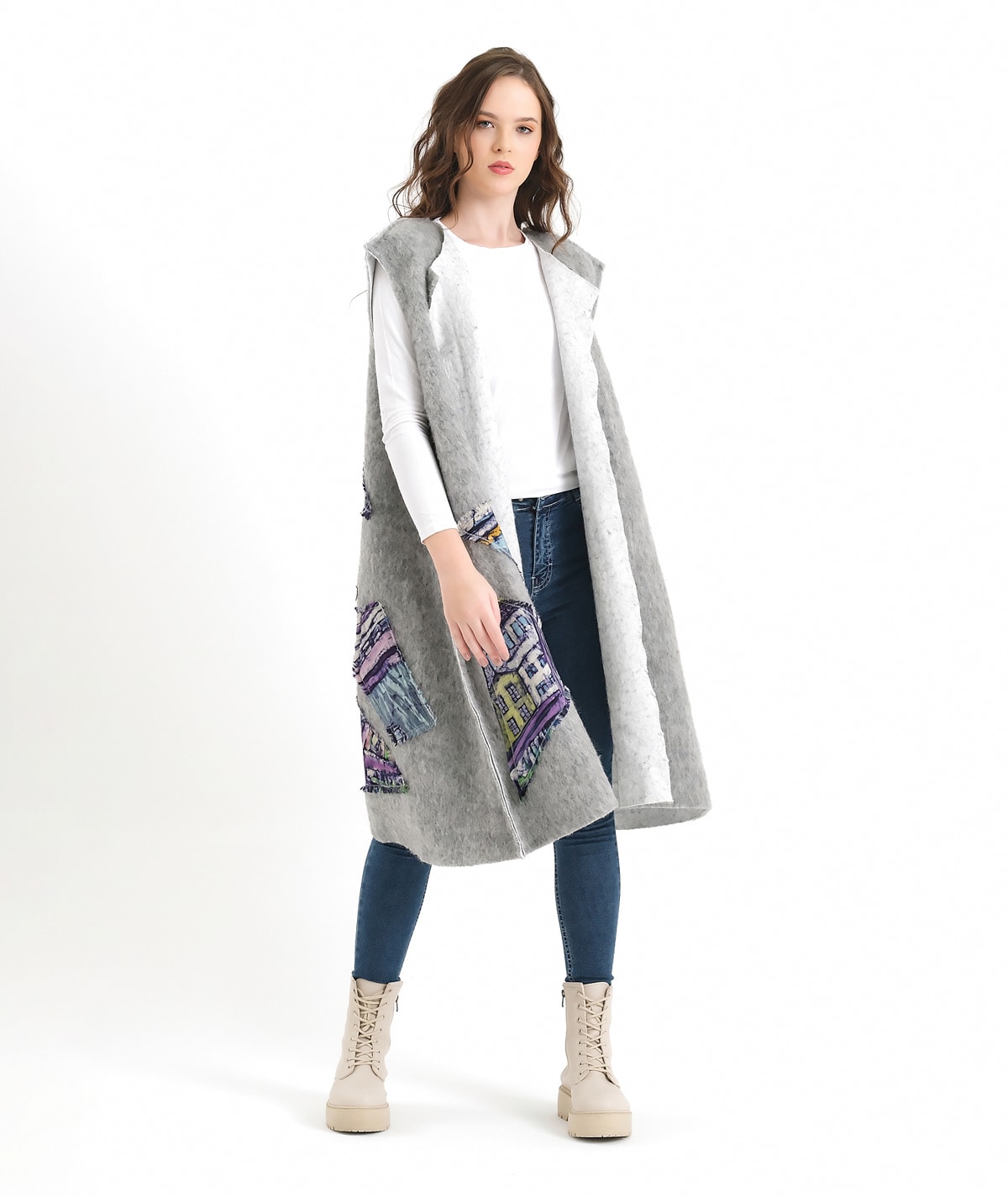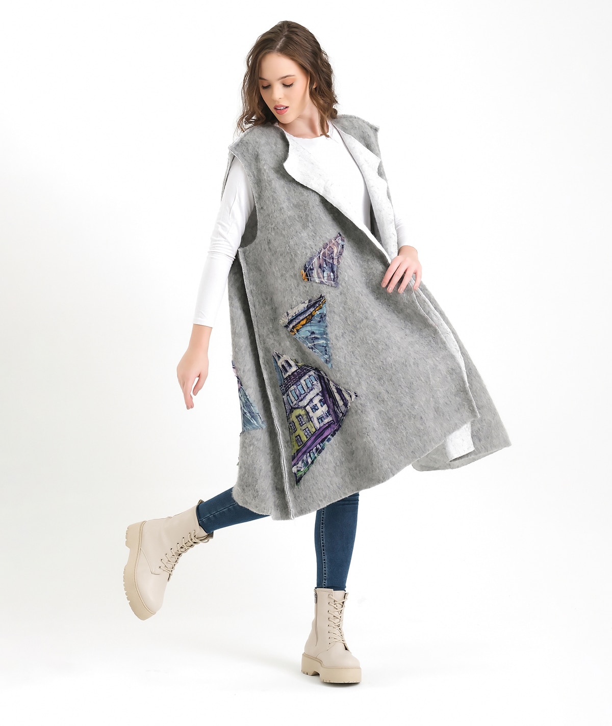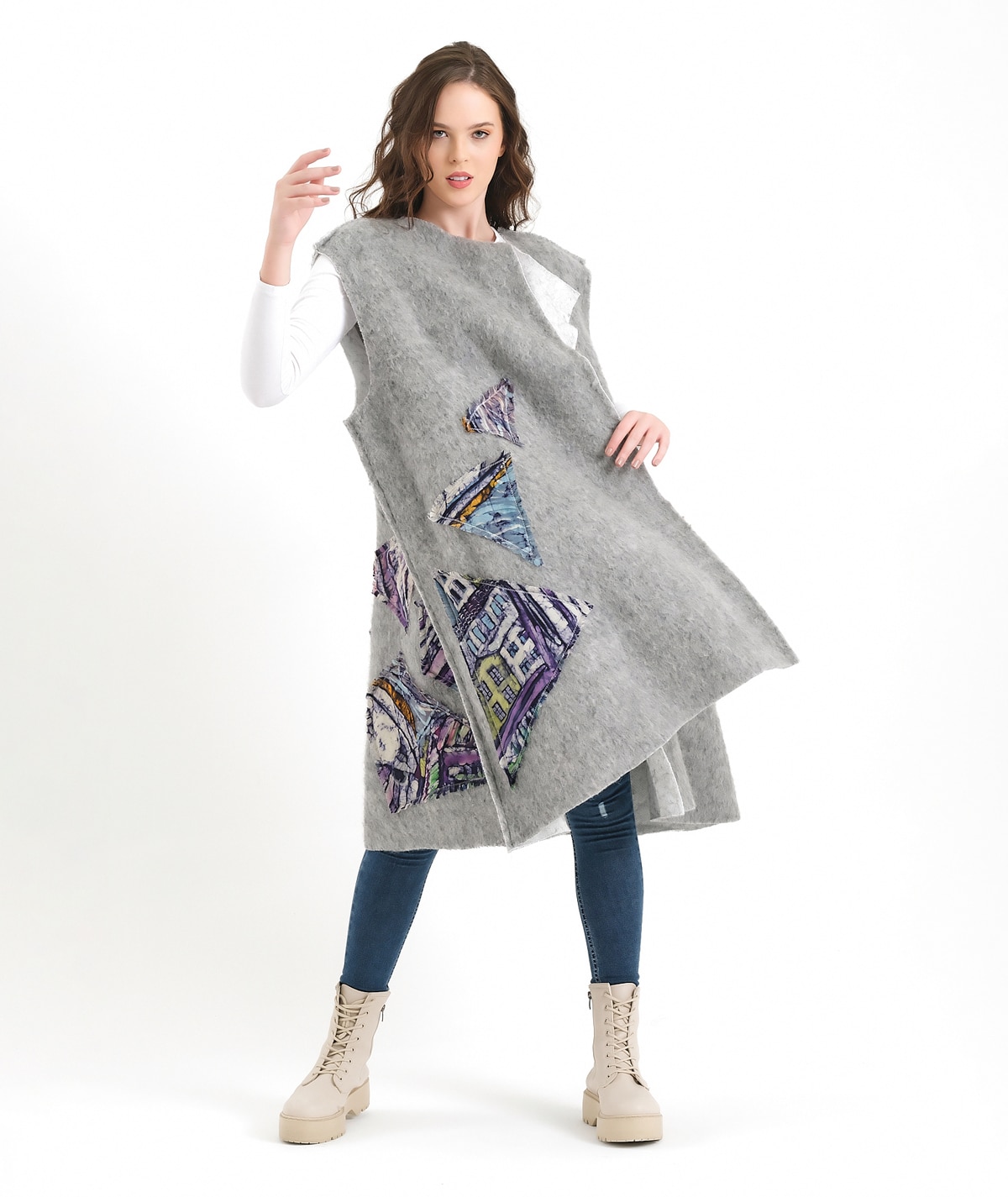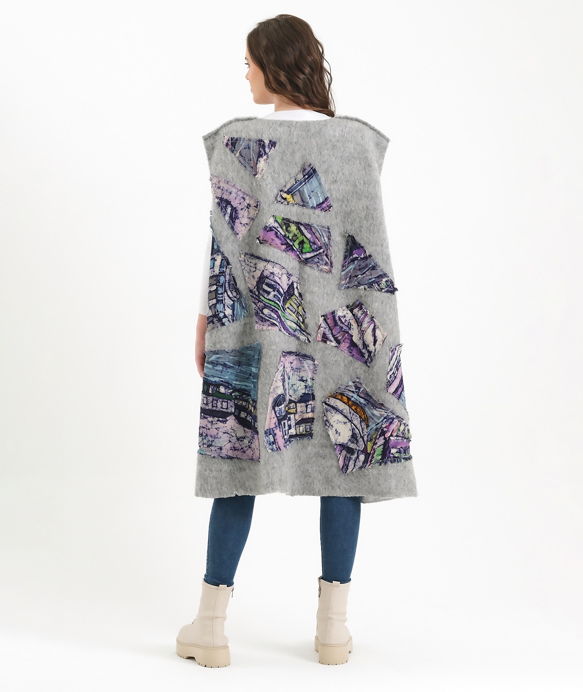 Designed on wool felt fabric and enriched with silk batik appliqué details, this vest offers a unique balance of elegance and comfort for both day and night wear. Created for free-spirited women, it goes beyond being a garment and becomes a reflection of individuality and artistic expression. This is not just a vest; it is a wearable canvas shaped by craftsmanship, texture, and personal style.