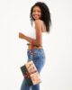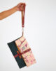 It is lined with cotton and consists of a single pocket. One side is made of leather, and the other side is made of marbled fabric. The closure has a studded leather strap design with a twist lock. It is completed with a metal accessory and a wrist strap. Preferred by women who love simple elegance, this model stands out with its dominant multicolored marbled pattern.